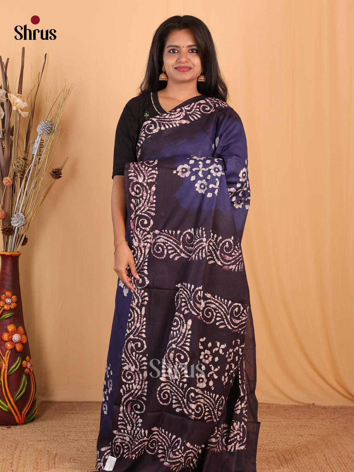Beautiful Blue Bhatik Saree features a stunning bhatik floral print on the body and is complemented by a contrast printed border and pallu. Paired with self blouse with border adds the perfect finishing touch