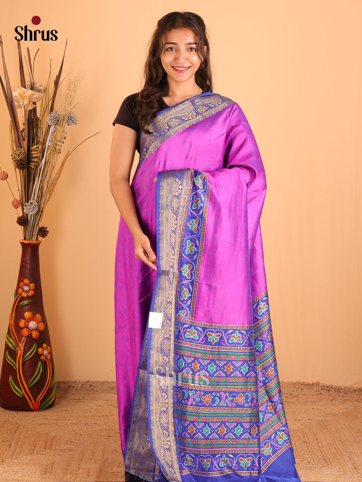 Majenta & Blue- Semi Patola Saree