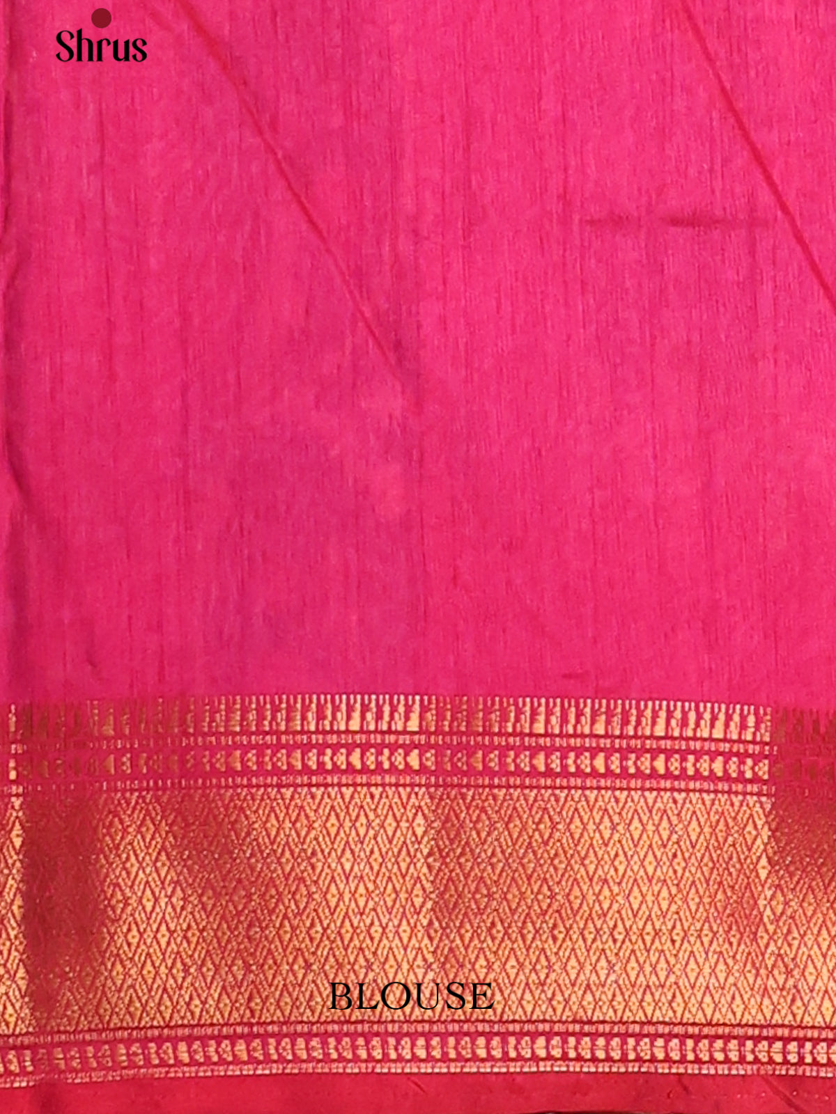 Elegant purple Semi Patola Saree features a intricate patola patterns on the full body . Adding to its elegance are the Pink zari woven borders and a patola pattern pallu, all complemented by a contrast blouse with zari border.