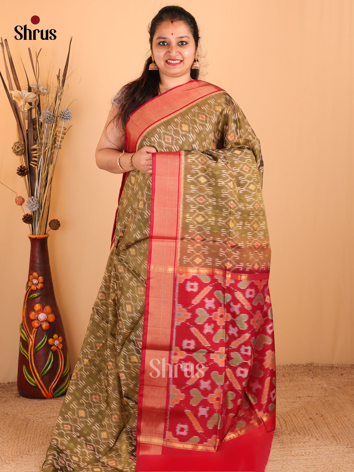 Chutney Green with Red - DDS11110 - Pochampally sico Saree