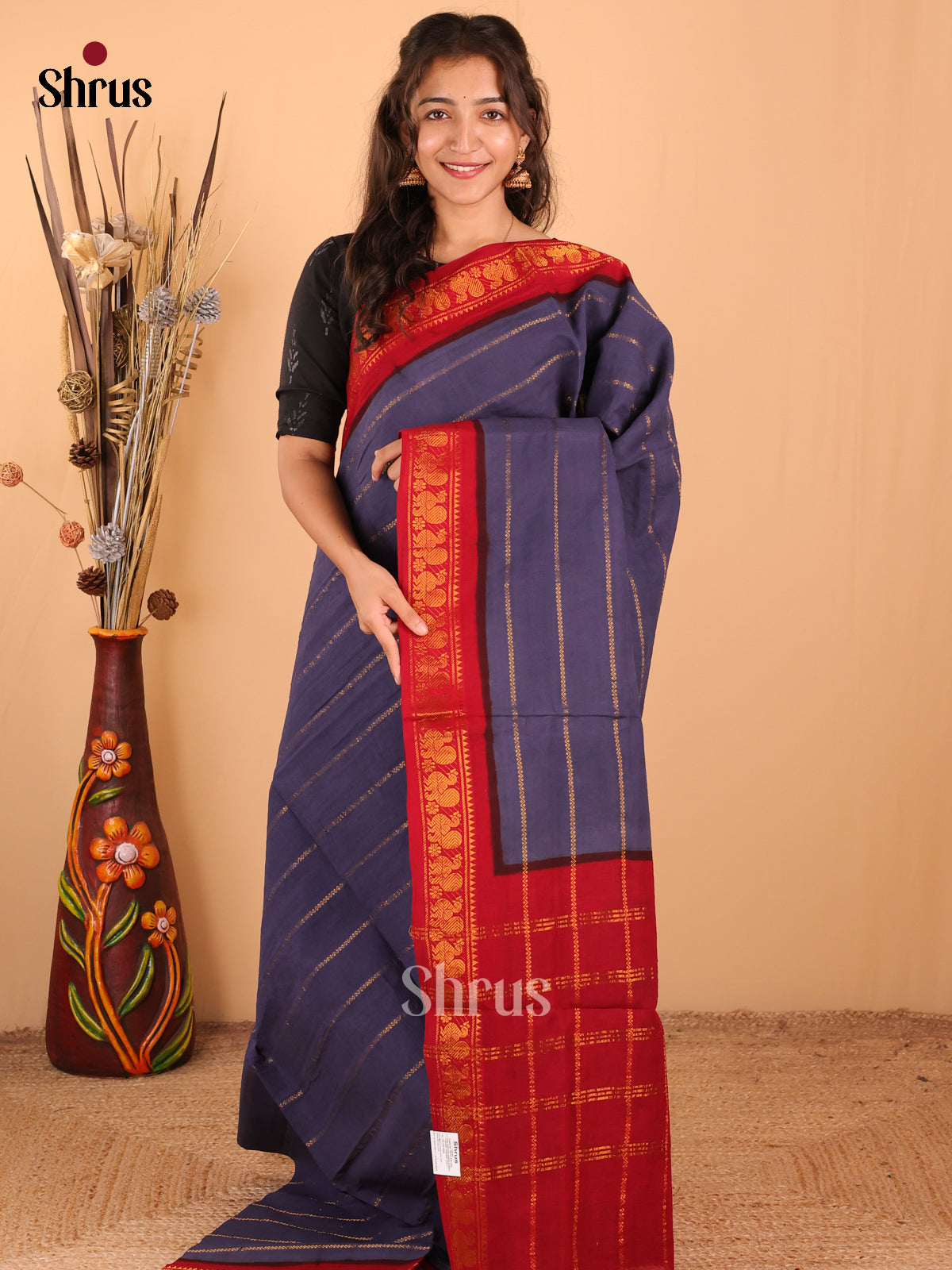 Blue with Red - DDS15113 - Sungudi Cotton Saree