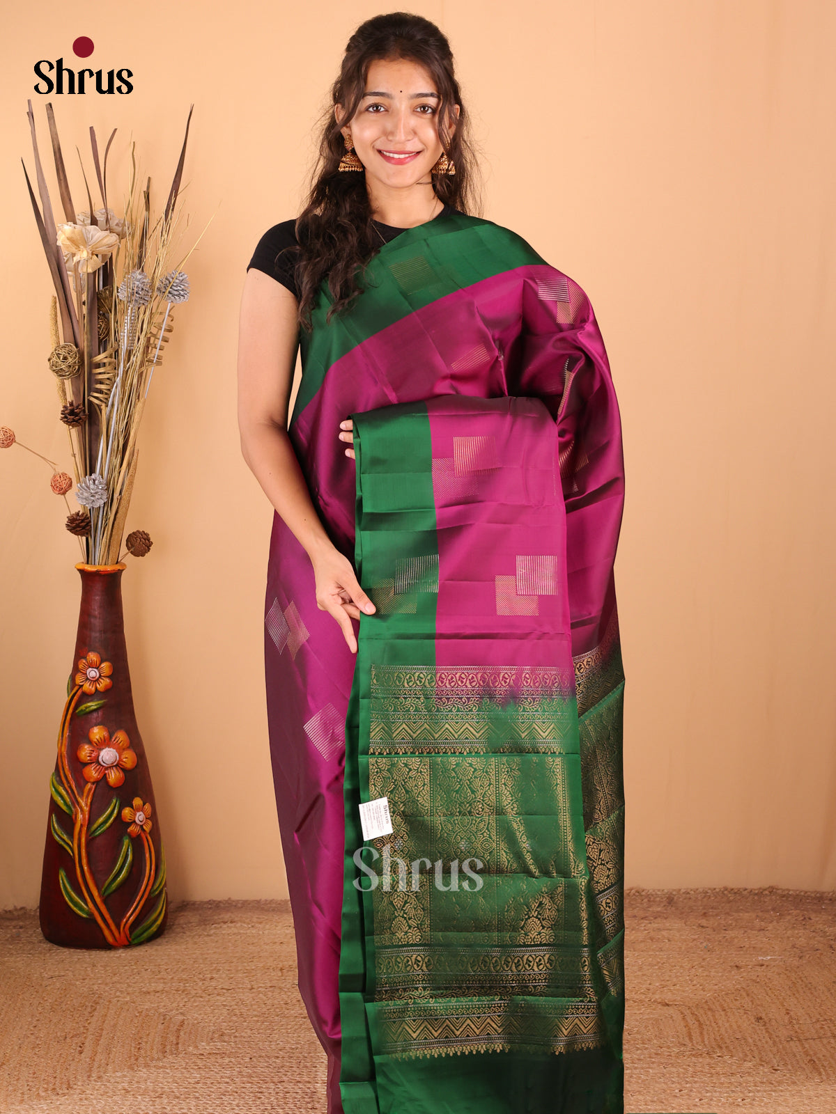 Purple with Green - DDS15176 - Softsilk-halfpure Saree