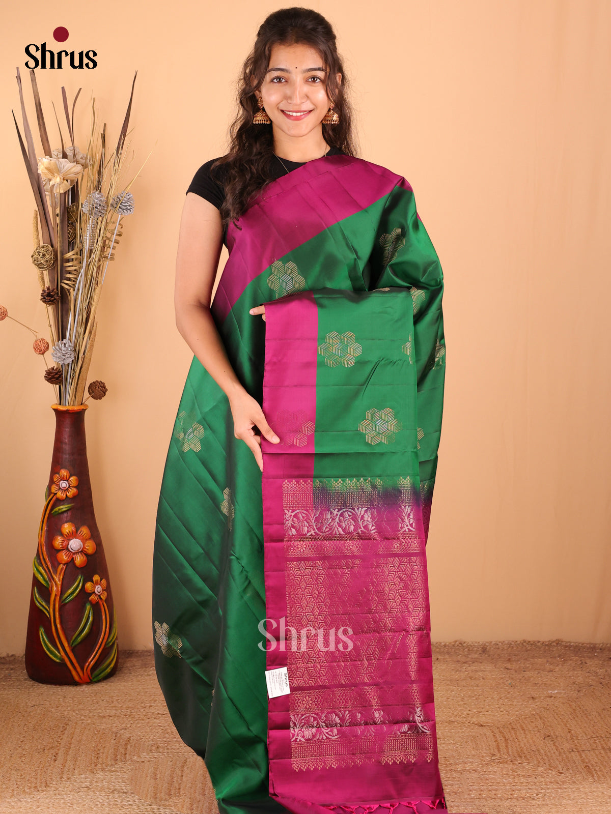 Green with Purple - DDS15197 - Softsilk-halfpure Saree