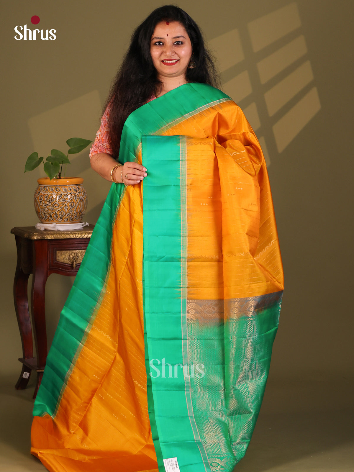 Step into radiant charm with this Bright Mambazha Yellow Soft Silk Saree! It's simply glowing with intricate zari-woven stripes across the body, adding a touch of subtle sparkle. The vibrant contrasting Green border is a delightful pop of color, making this saree a true standout among soft silk sarees latest trends. The gorgeous contrast zari-woven brocade pallu is a masterpiece, creating a truly stunning look. This saree feels wonderfully soft against your skin, and the plain blouse with a zari border provides that perfect, polished finishing touch. You'll absolutely love how this drapes!