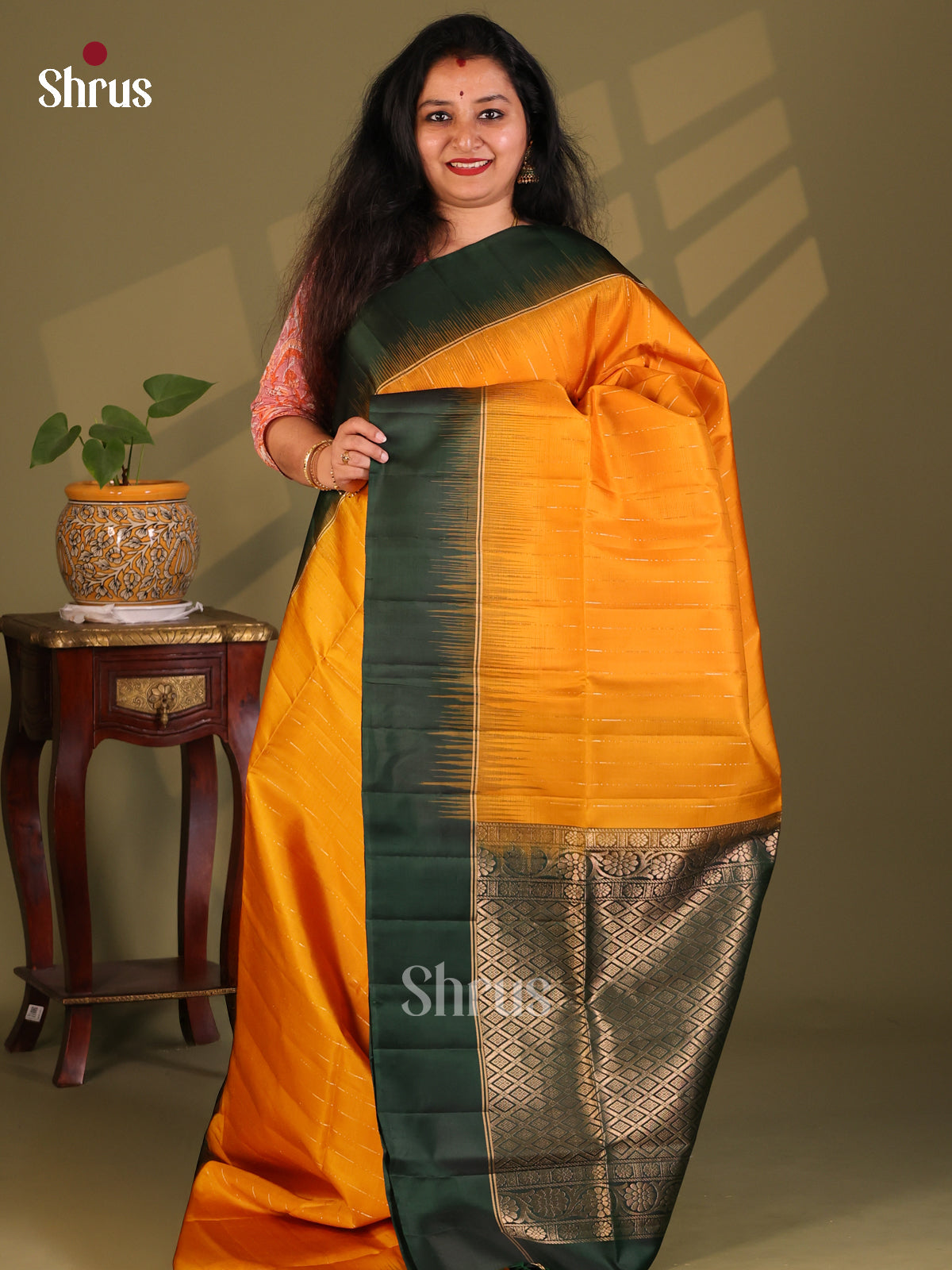 Step into the spotlight with this absolutely Glorious Mambazha Yellow Soft Silk Saree! Its vibrant body is playfully adorned with intricate zari-woven stripes and tiny buttas, adding a beautiful texture that feels just right. A contrasting green plain border offers a chic, modern edge to this traditional drape. The real showstopper is the stunning green pallu, expertly crafted with a dazzling criss-cross zari woven brocade design that catches every eye. This is one of those soft silk sarees latest trends you just can't miss. It comes with a simple plain blouse featuring a zari border for that perfect finishing touch.