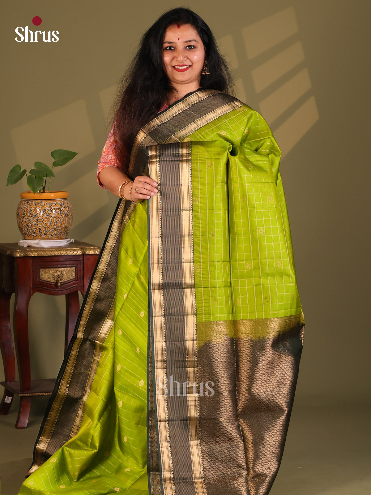 Chic Lite Green Soft Silk Saree with zari woven checks , buttas & brocade pallu