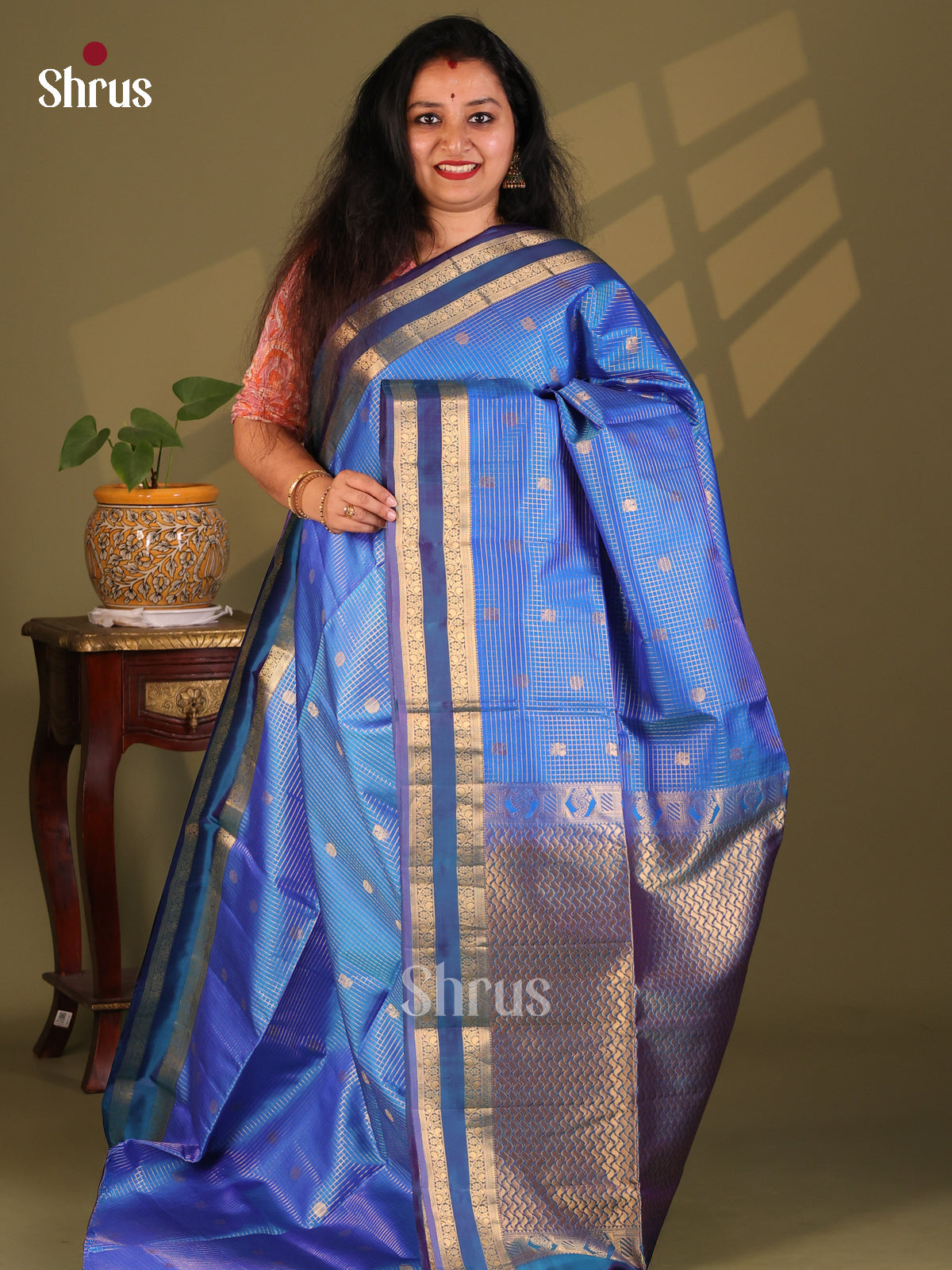 Celestial Blue Soft Silk Saree with vaira oosi checks,buttas, brocade pallu