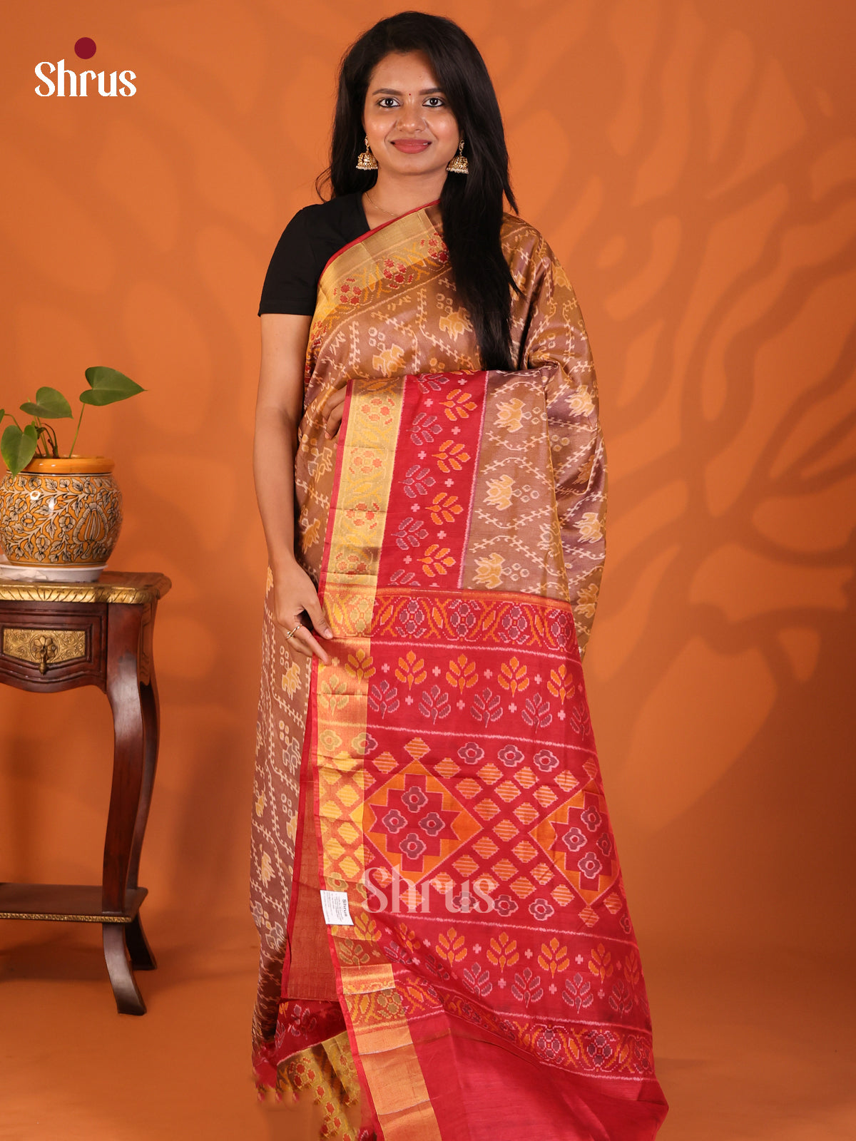 Brown with Maroon - Semi Patola Saree