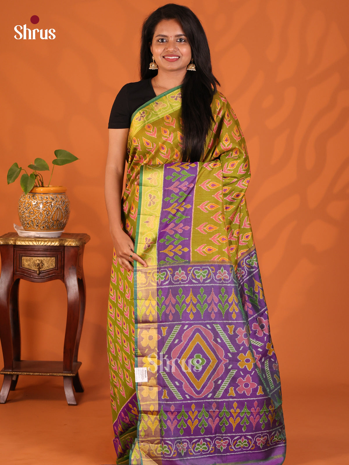 Green with Purple - Semi Patola Saree