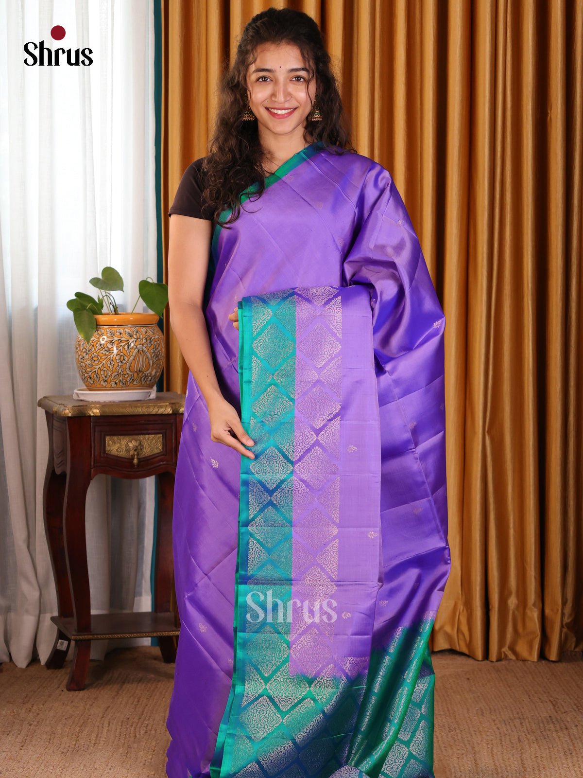 Beautiful Purple Soft silk Saree with zari woven buttas & Green Zari brocade pallu