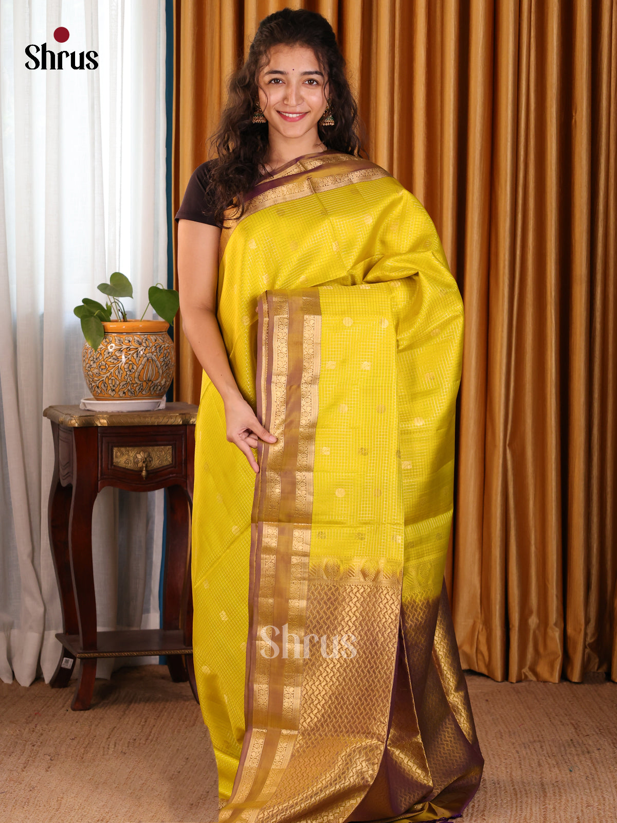 Unveil timeless beauty with this glorious mustard soft silk saree, a captivating addition to any collection. The saree's radiant body shimmers with meticulously woven gold zari checks and delicate buttas, creating an exquisite texture. It is elegantly framed by splendid contrast brown Rettaipet borders on both sides, featuring rich zari weaving that adds a touch of traditional grandeur. The very rich pallu beautifully complements the border's design, enhancing the saree's opulent appeal. This stunning ensemble is paired with a matching contrast blouse with border, truly enhancing the overall look of the sari. Discover more and Buy Soft Silk Sarees Latest Collection Online to elevate your style.