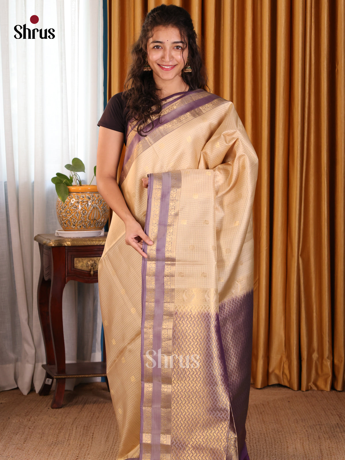 Stunning Cream with lavender SoftsilkSaree with vaira oosi check, buttas &brocade pallu