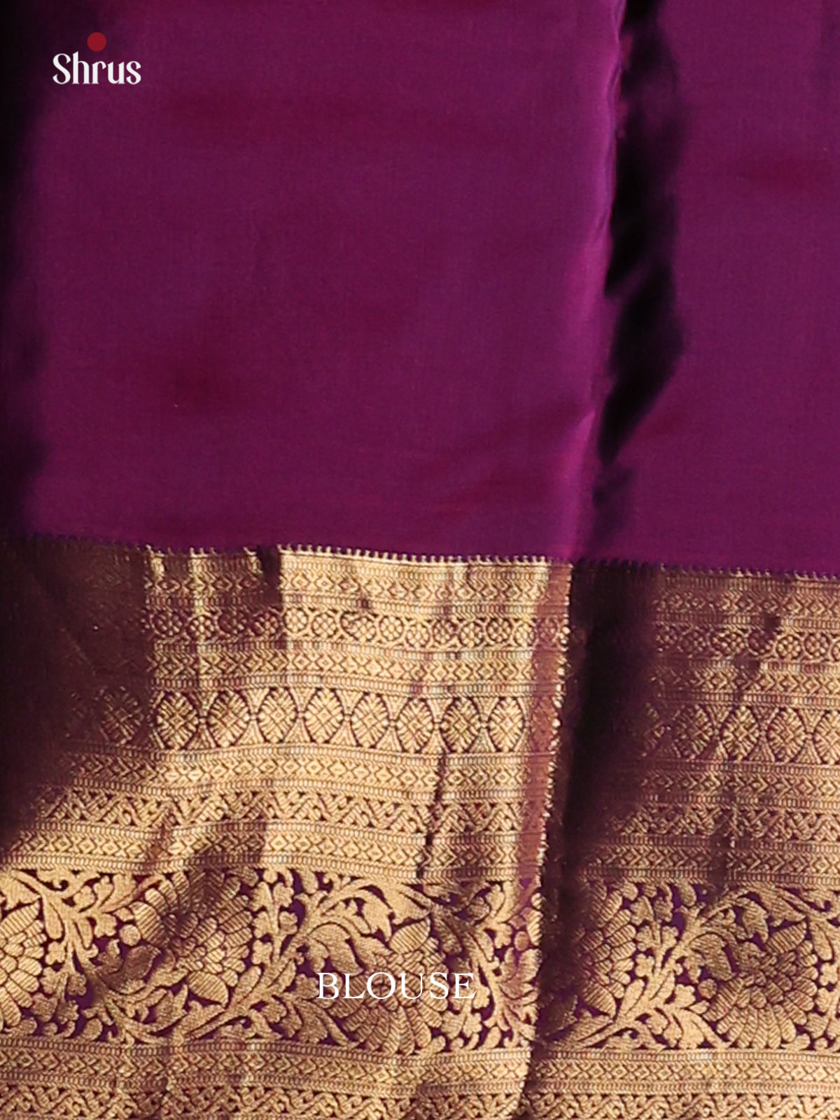 Classy Green Kanchipuram Half-Pure Saree features zari-woven floral buttas across the body, beautifully accented by contrasting Purple zari borders for a timeless appeal. The rich contrast zari brocade pallu and plain blouse with matching border complete the look with refined elegance.