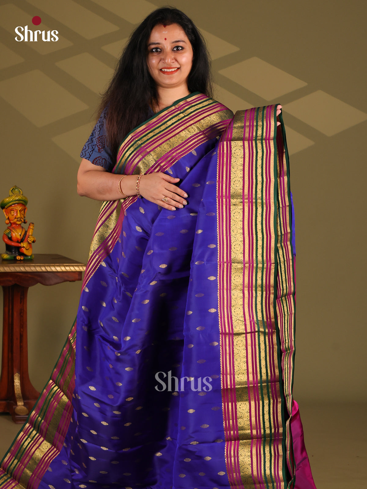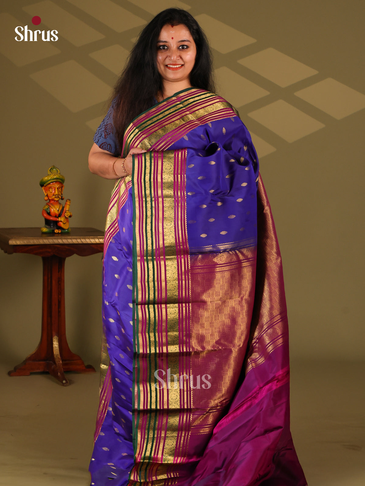 Blue & Purple - Kanchipuram-halfpure Saree