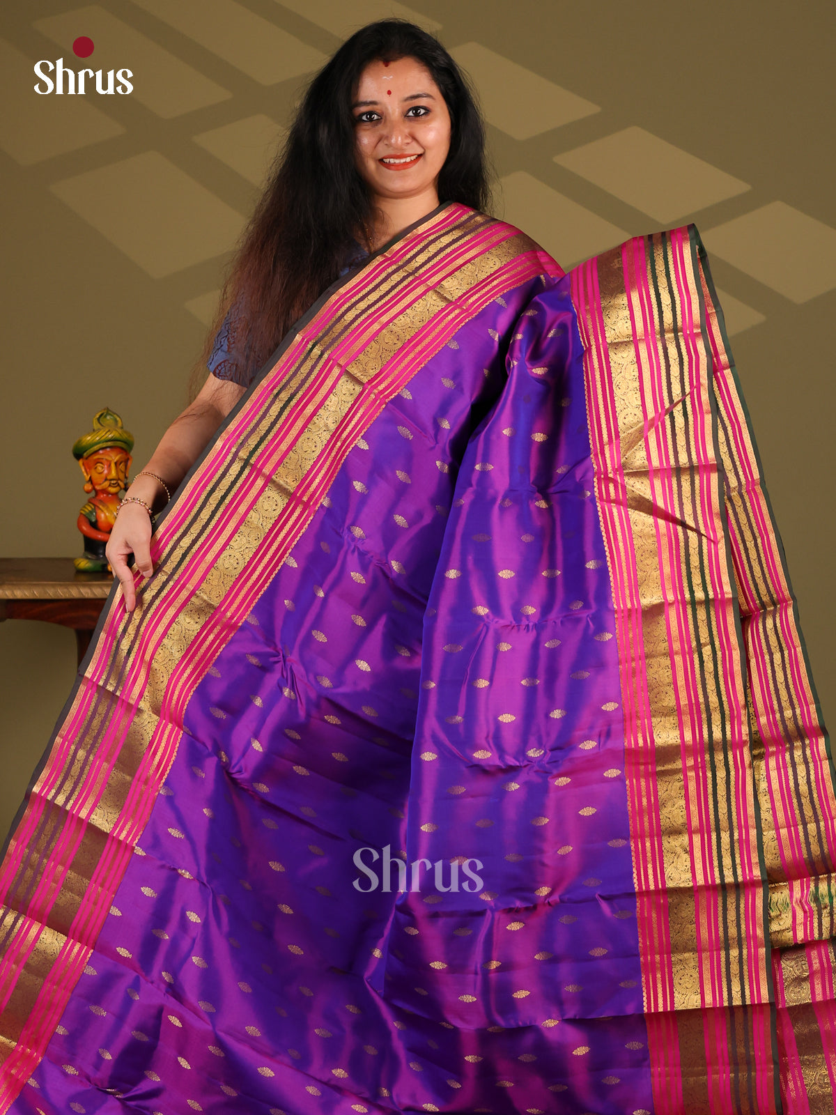 Purple & Majenta - Kanchipuram-halfpure Saree