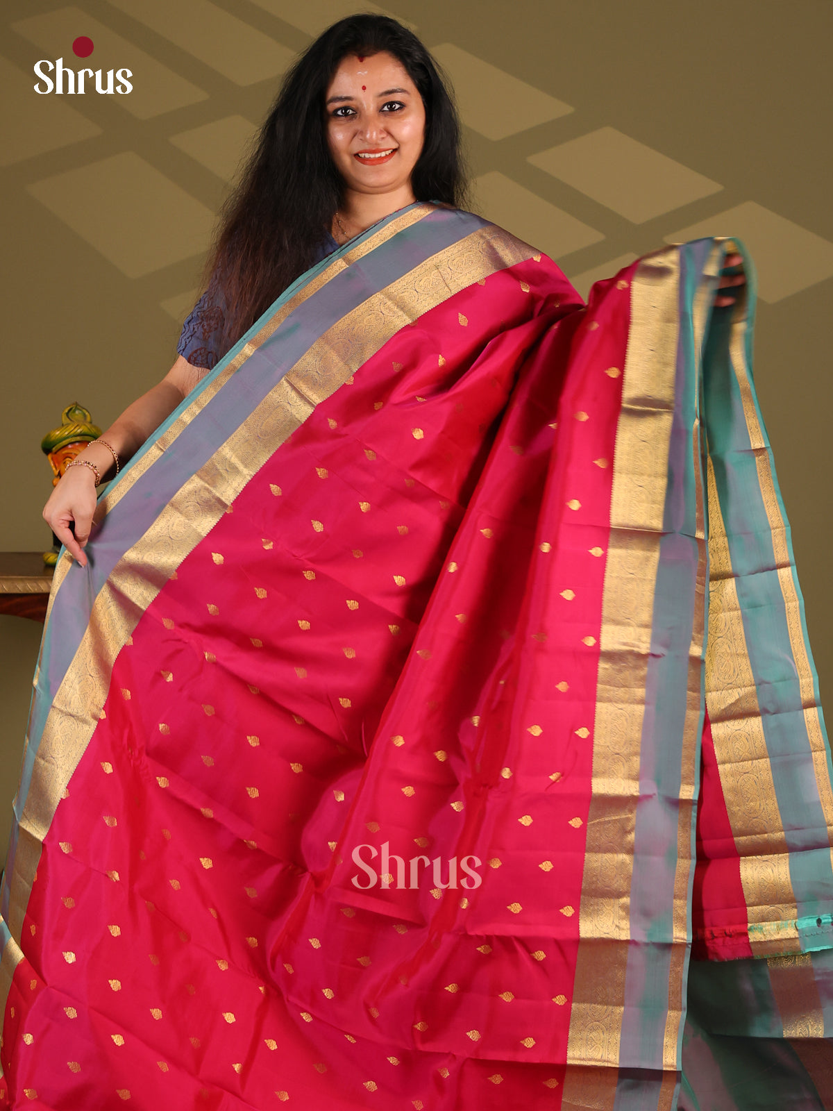 Red & Double shade purple - Kanchipuram-halfpure Saree