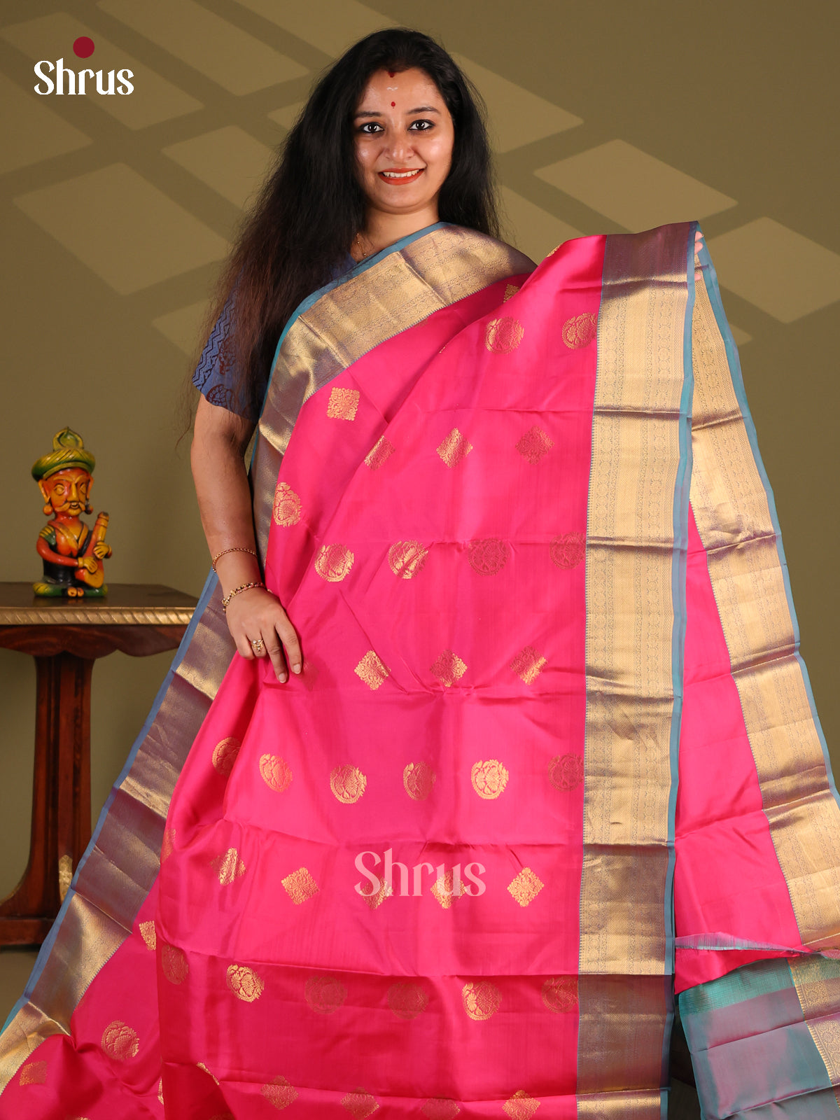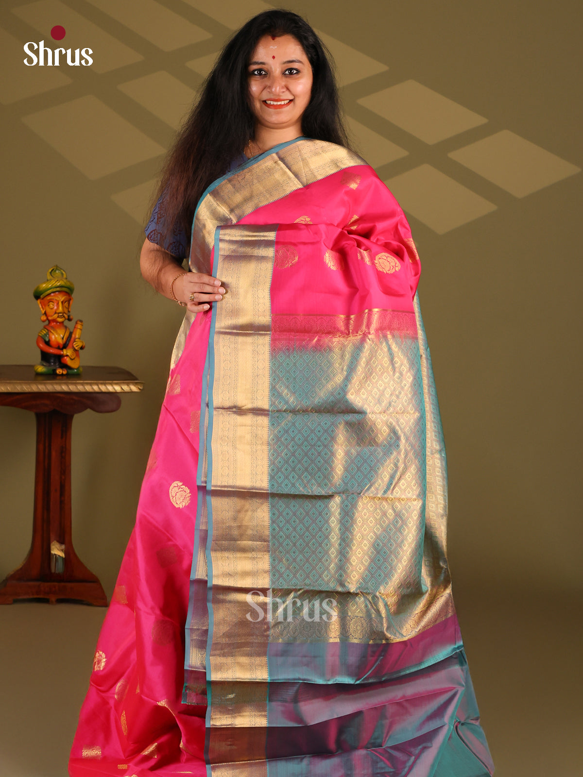 Pink & Double Shaded Purple - Kanchipuram-halfpure Saree