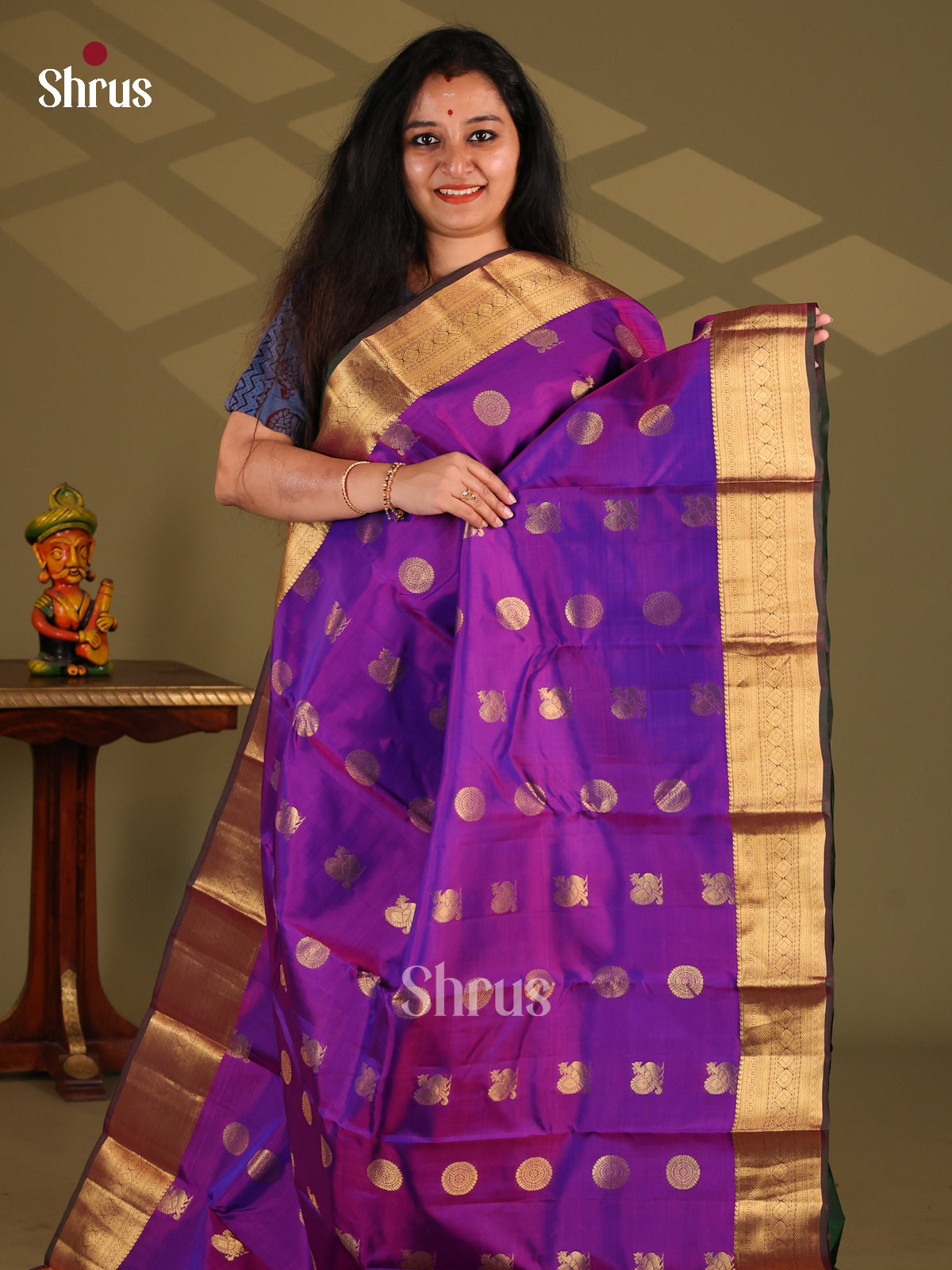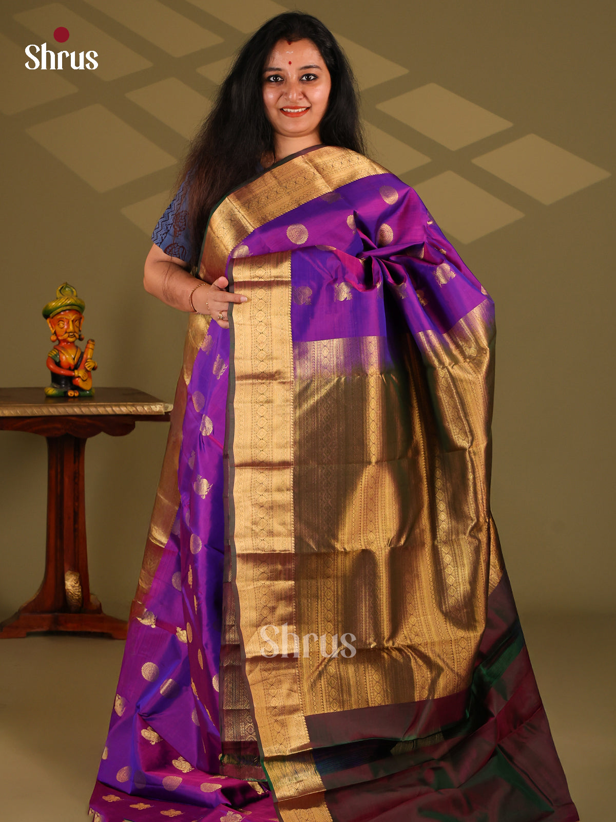 Violet & Maroon - Kanchipuram-halfpure Saree