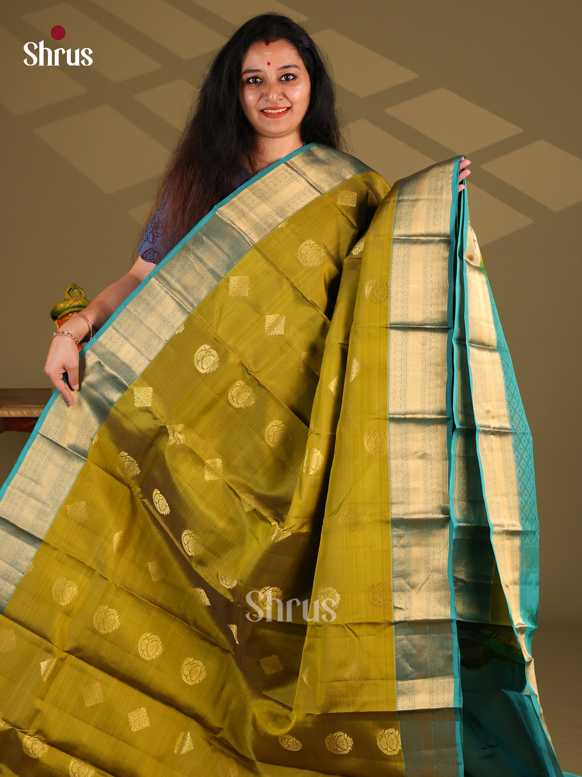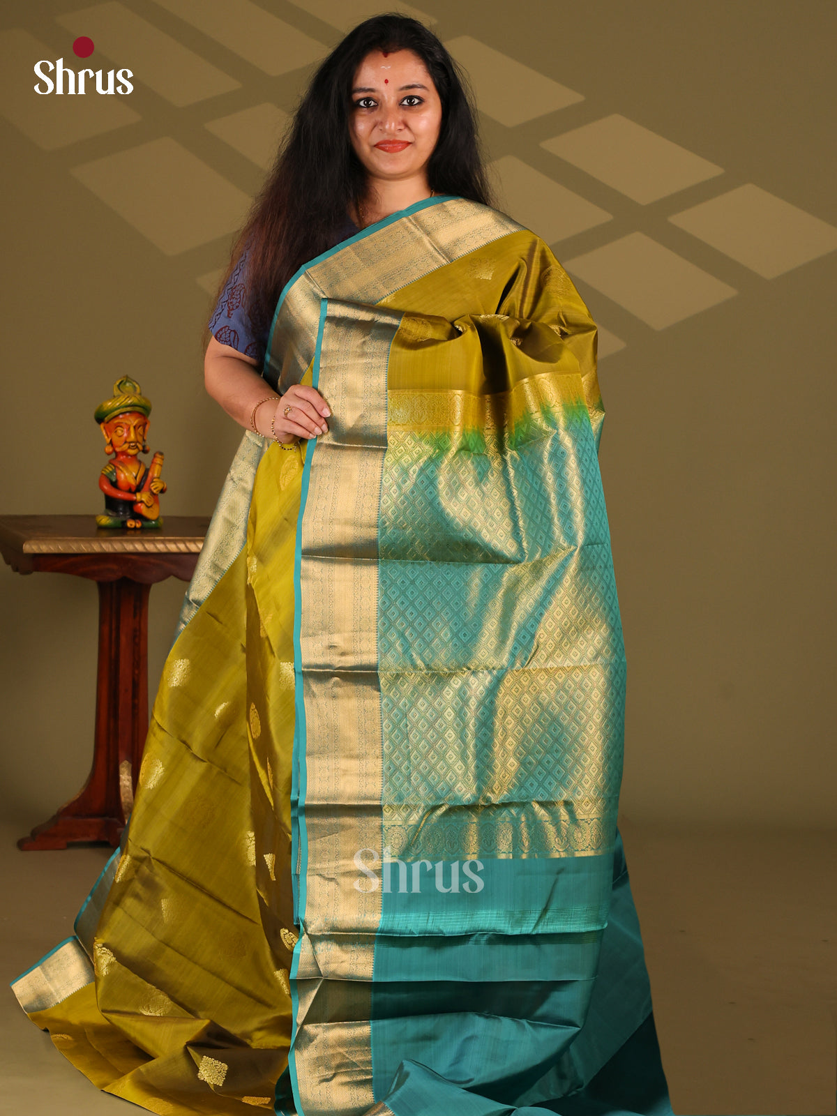 Mehandi Green & Blue - Kanchipuram-halfpure Saree
