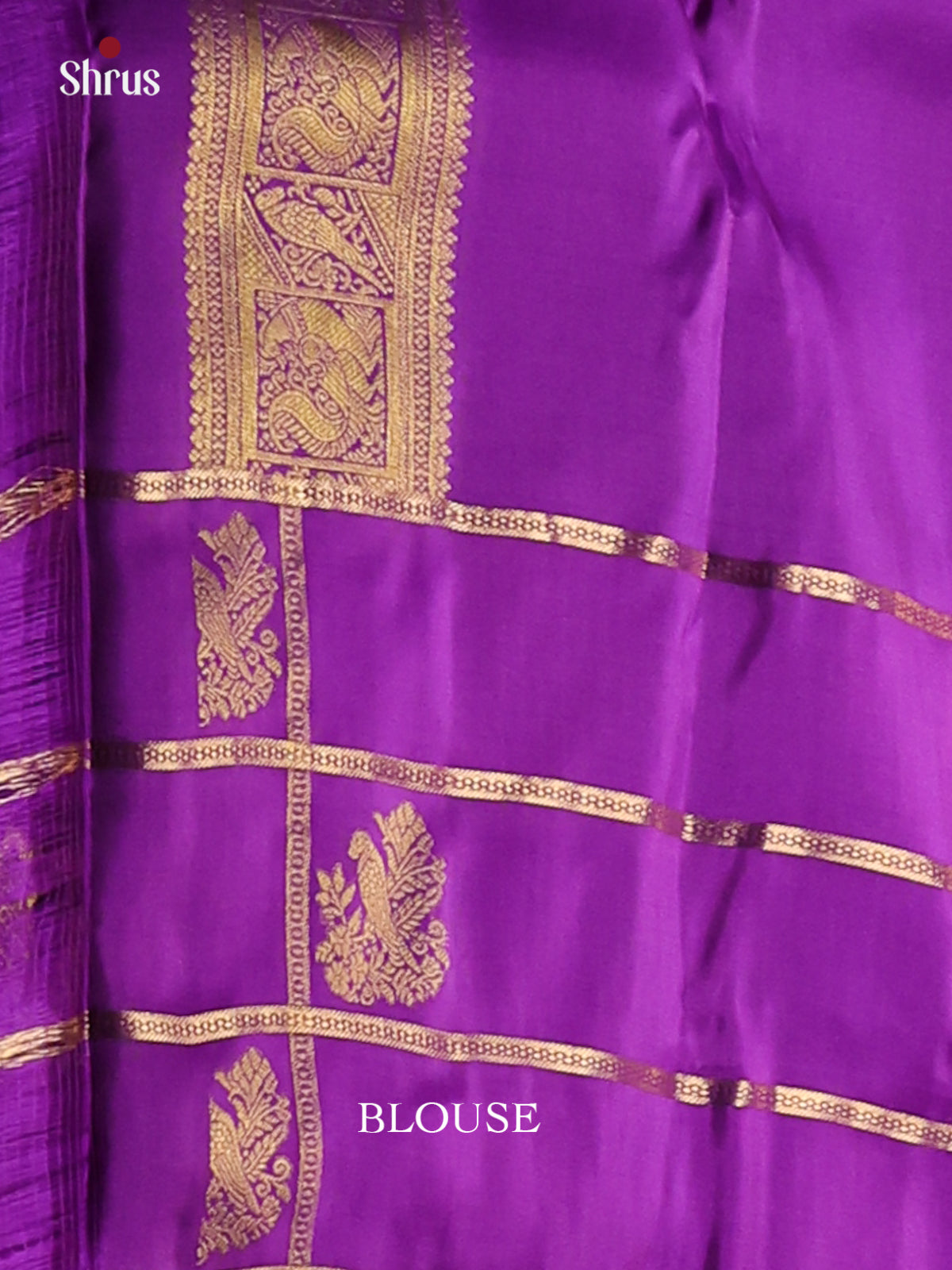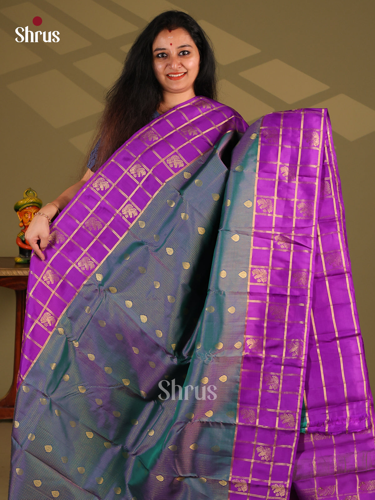 Peacock Green & Purple - Kanchipuram-halfpure Saree