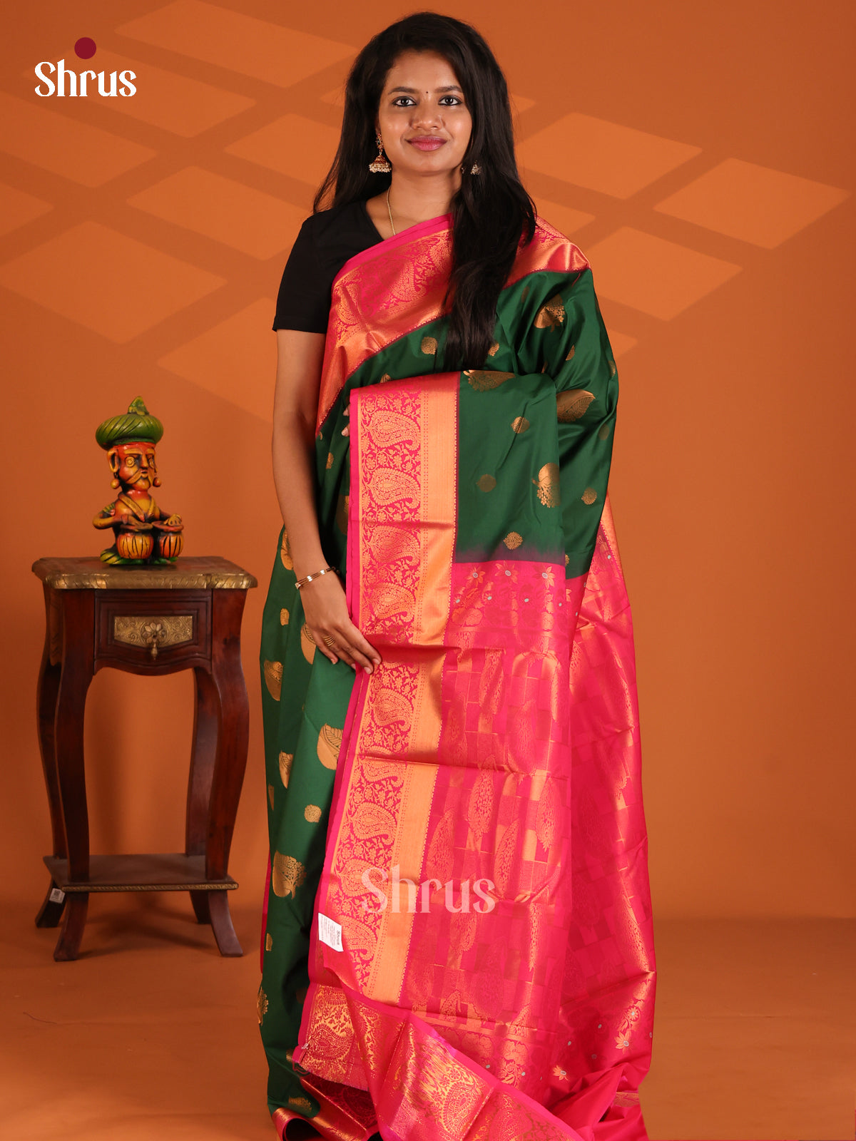 Green with Pink - Semi Kanchipuram Saree