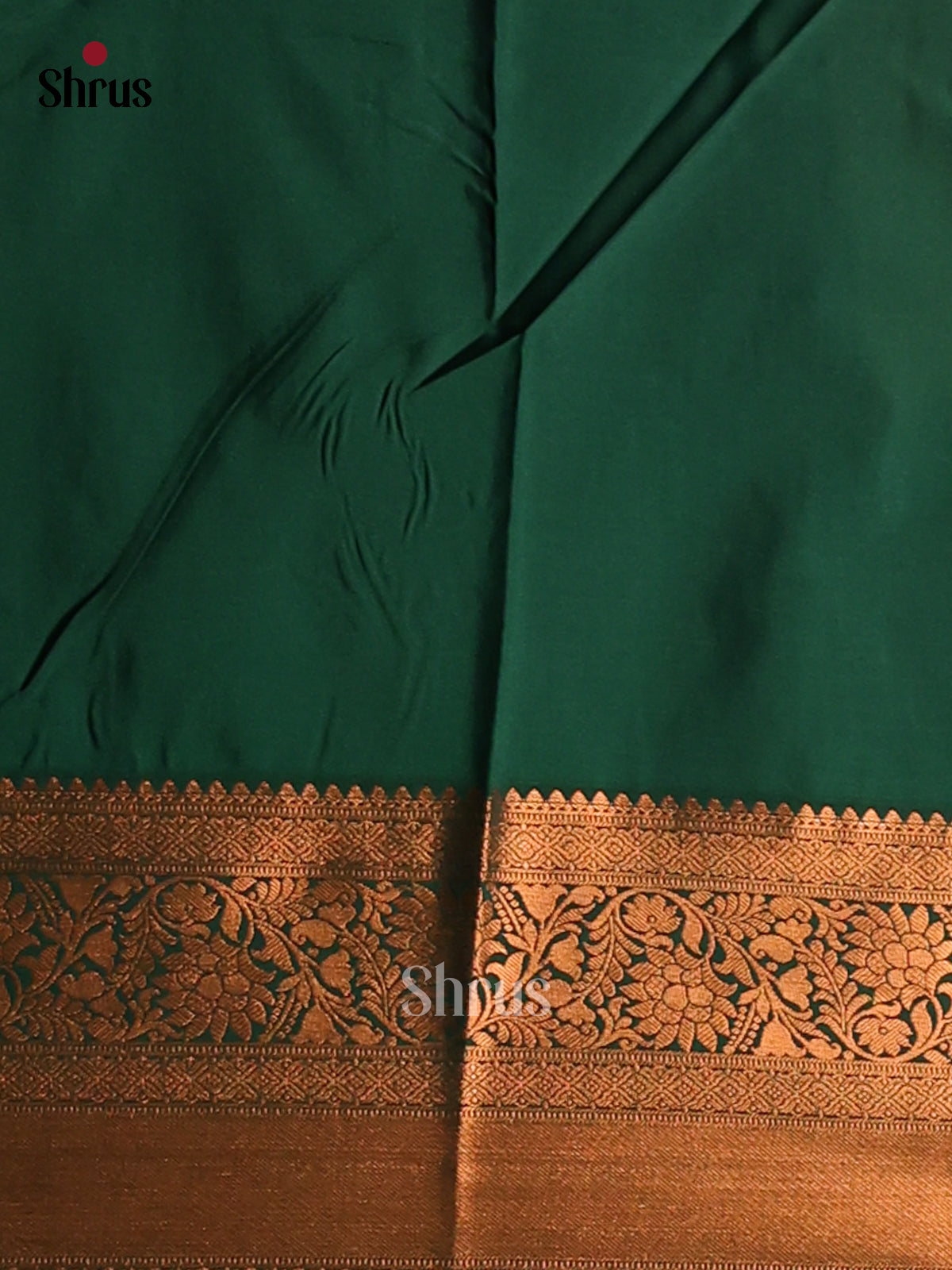 Classy Maroon Semi Kanchipuram silk saree, adorned with zari checks , buttas across the body, exudes timeless charm. It is beautifully complemented by a rich zari border and a Green brocade-woven zari pallu. A plain contrast blouse completes this stunning ensemble.