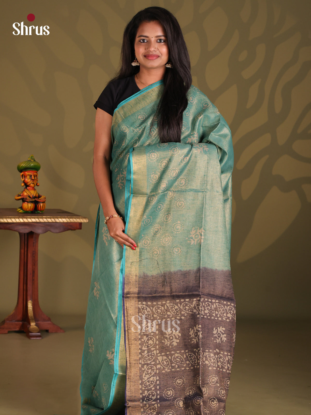 Beautiful Sky Blue Batik Saree showcases a captivating floral batik print across the body, gracefully paired with a vibrant zari border. The striking Purple pallu adds a bold touch of sophistication, while the matching contrast blouse with a zari border completes the ensemble with timeless charm.