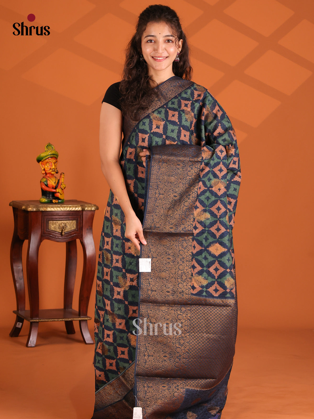 Beautiful Blue Semi Linen Printed Saree enchants with its elegant printed body adorned with delicate zari buttas. The self-woven zari border and intricately crafted zari brocade pallu add a touch of opulence to the ensemble. Paired with a matching self blouse featuring a subtle zari border, this saree exudes refined charm and timeless grace.