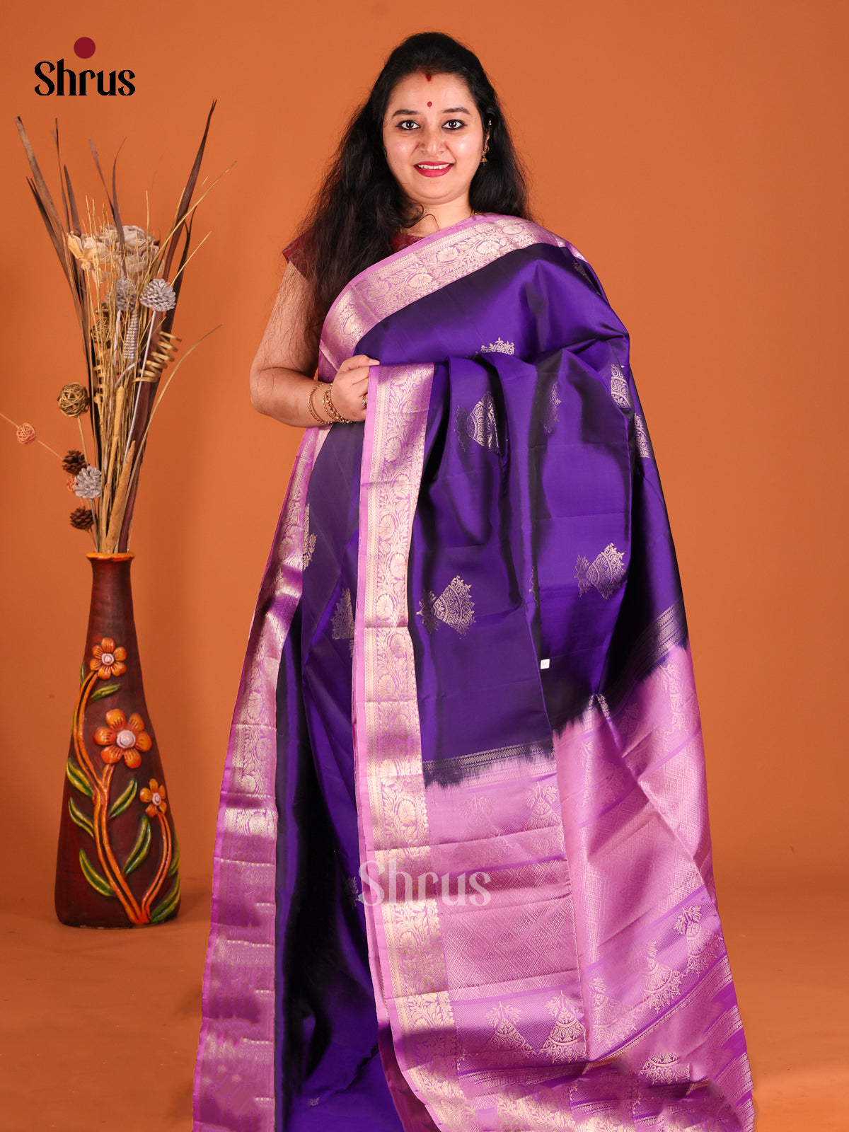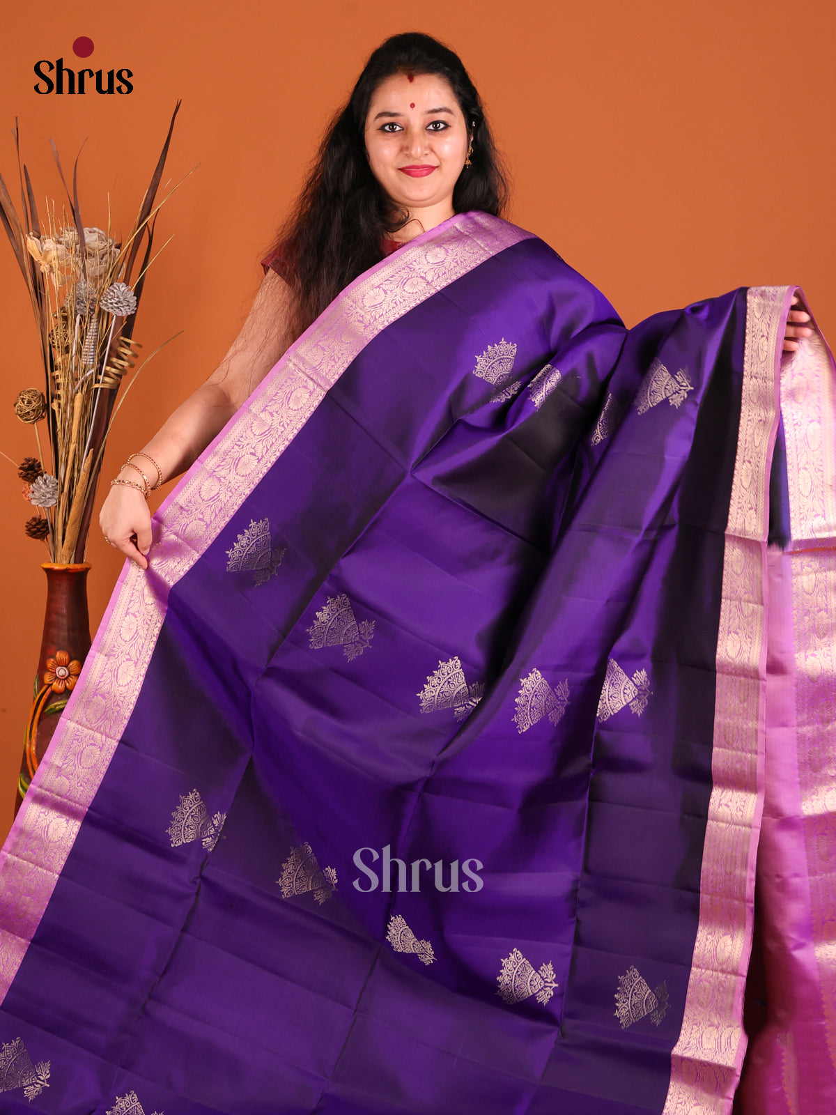 Charming Violet Soft Silk Saree gleams with gold zari floral motifs