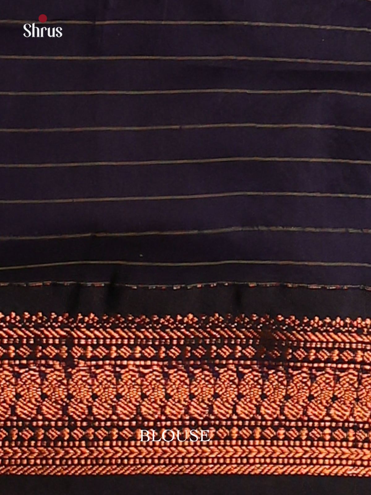 Vibrant Parrot green Kalyani Cotton Saree With Copper Zari Checks & Navy Blue Border