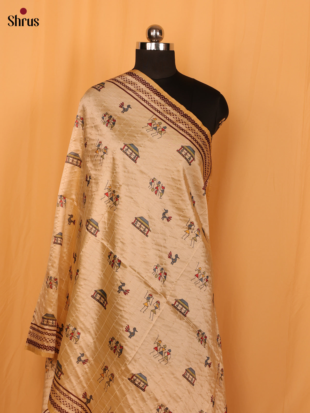 Cream Warli Print Semi Silk Dupatta - MCL28079