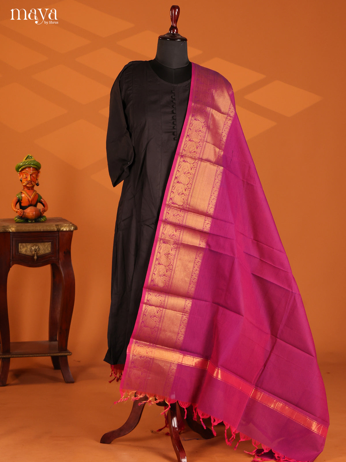 Graceful Pink Chettinad Cotton Dupatta adorned with classic zari borders.