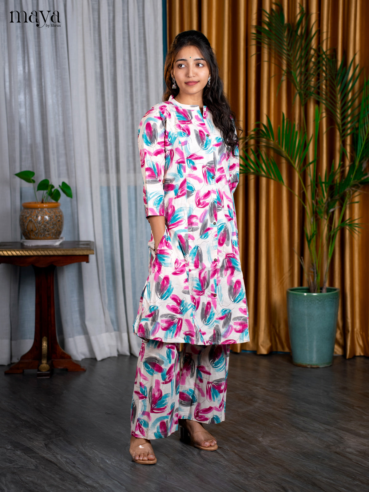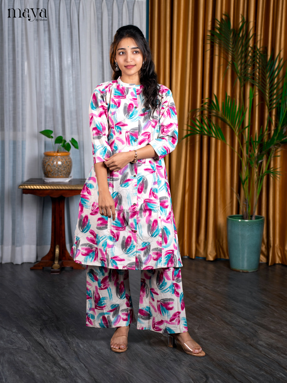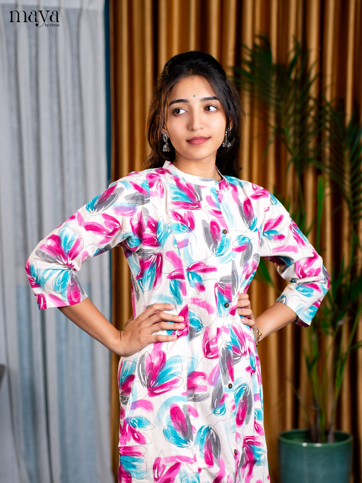 Multi Coloour Cotton 2pc Floral Print Salwar Suit - Top & Bottom