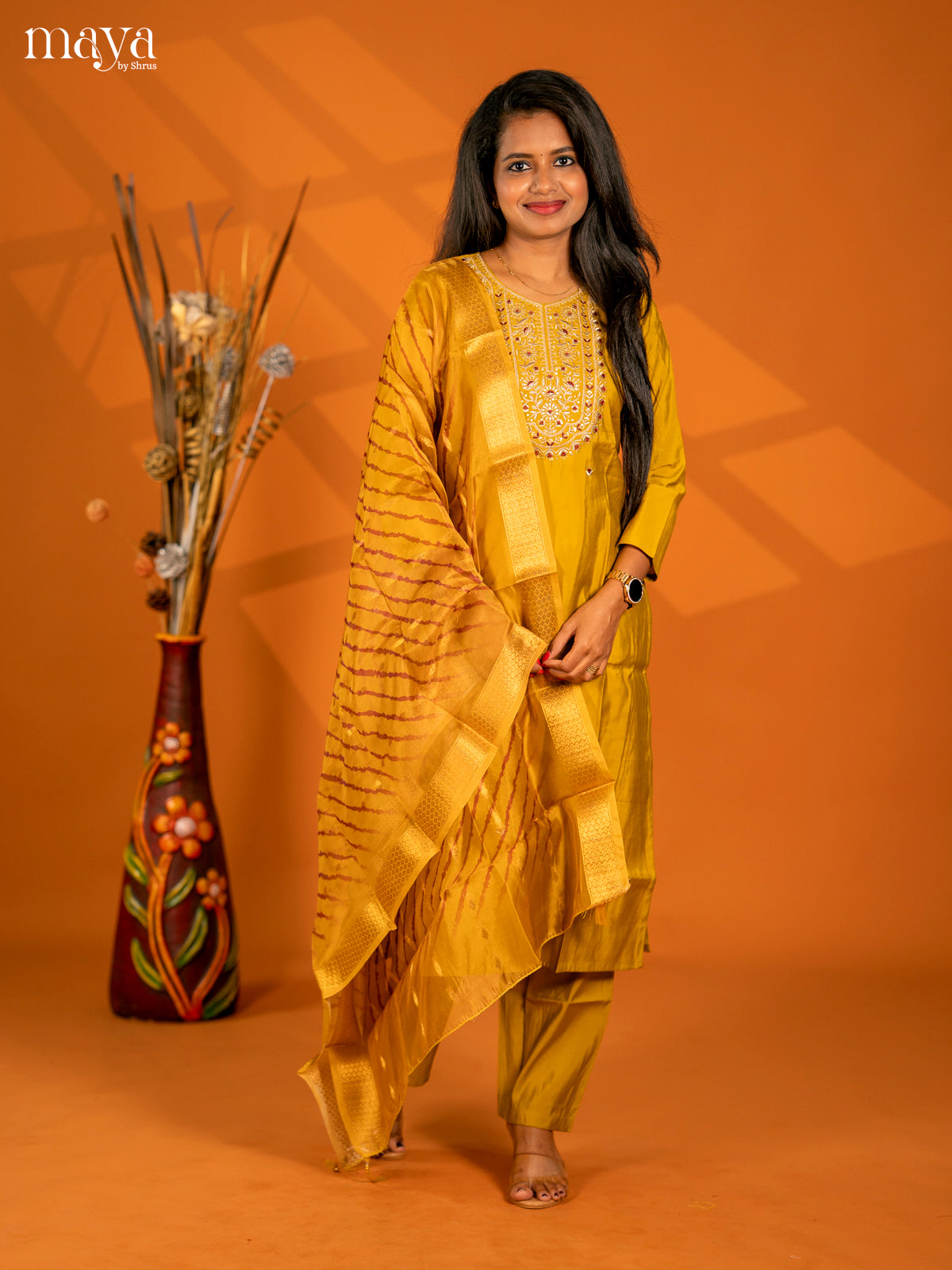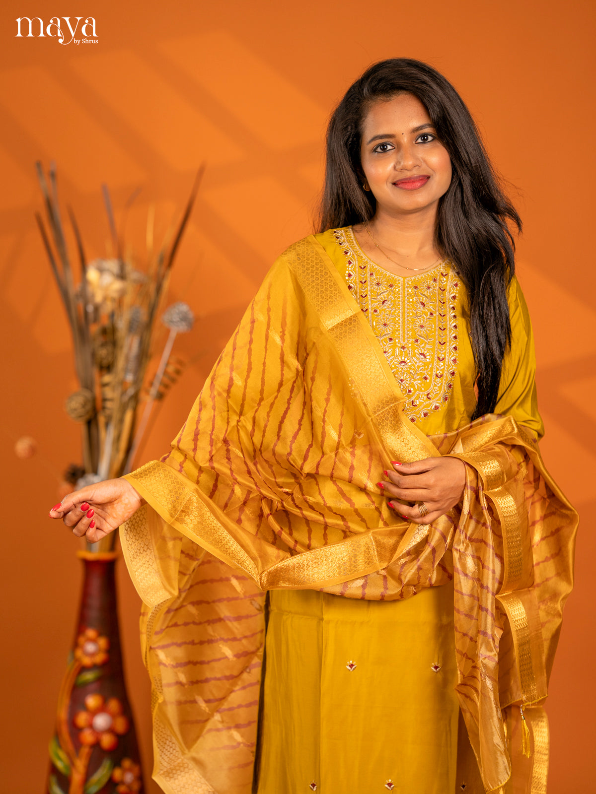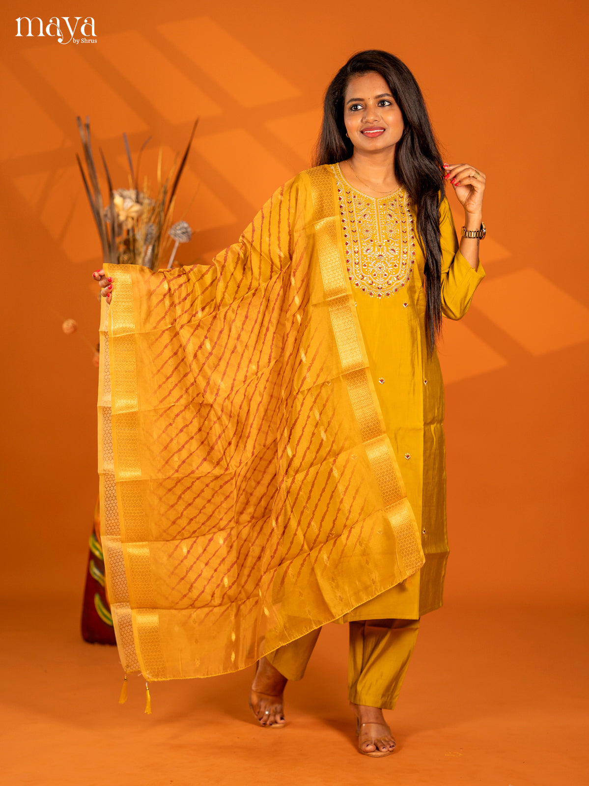 Embroidered Rayon 3pc Mustard Salwar Suit - Top, Bottom & Dupatta