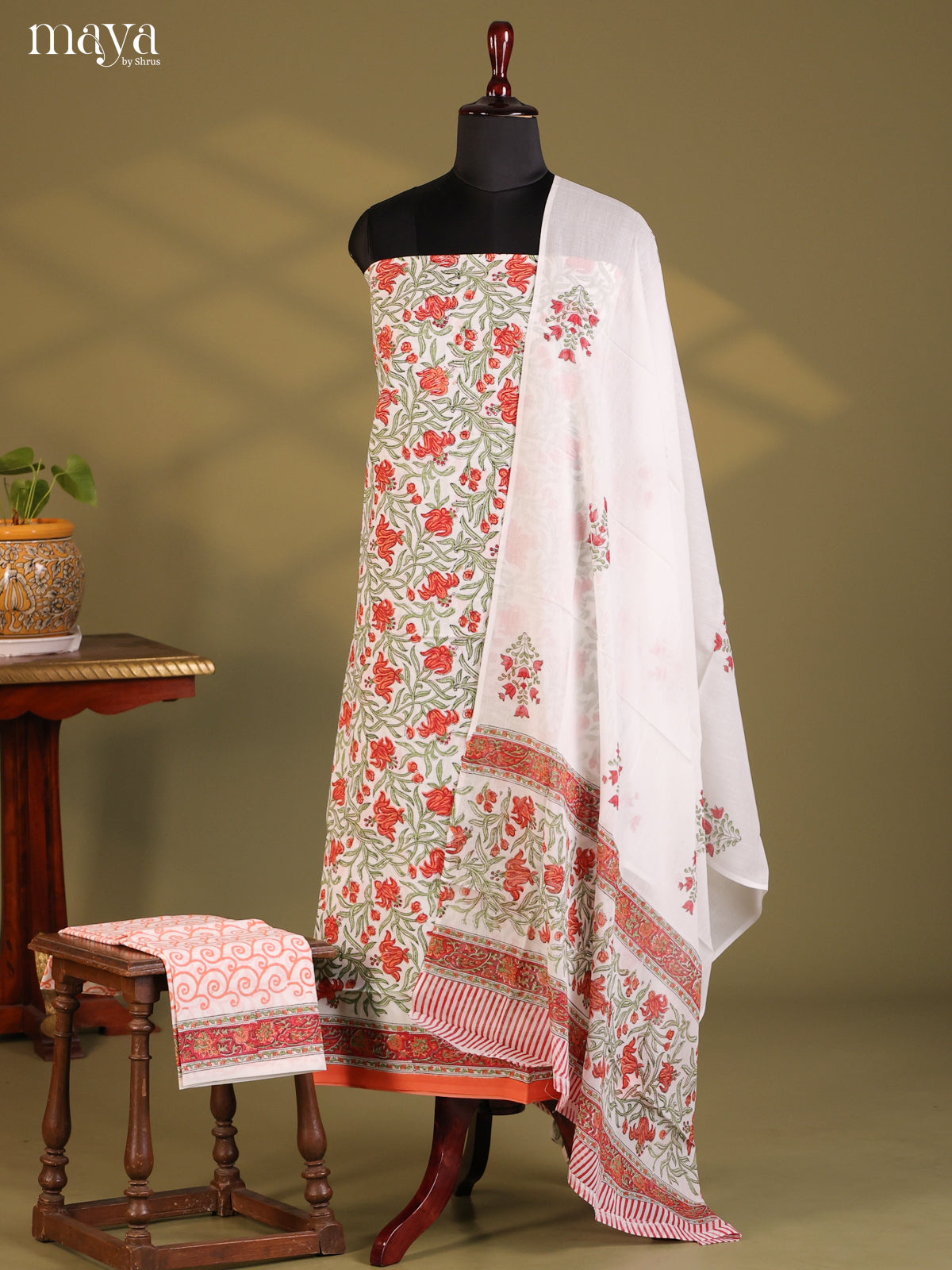 Elegant White & Green Cotton salwar adds a touch of beauty to any ensemble with its lovely floral print, neck yoke and complementary bottom and dupatta. Made with high-quality cotton, this unstitched suit is perfect for any fashion-forward individual.