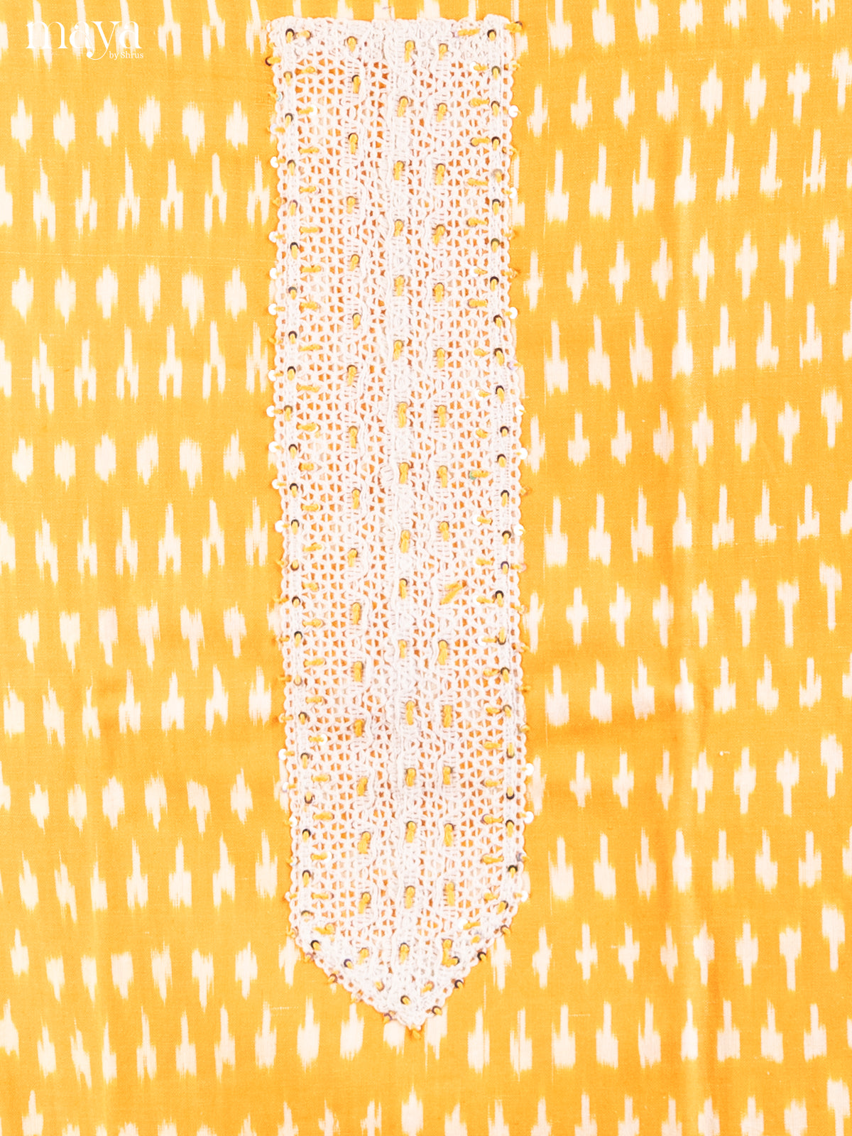 Bright Mustard Cotton salwar adds a touch of beauty to any ensemble with its lovely floral print , neck yokeand complementary self bottom and dupatta. Made with high-quality cotton, this unstitched suit is perfect for any fashion-forward individual