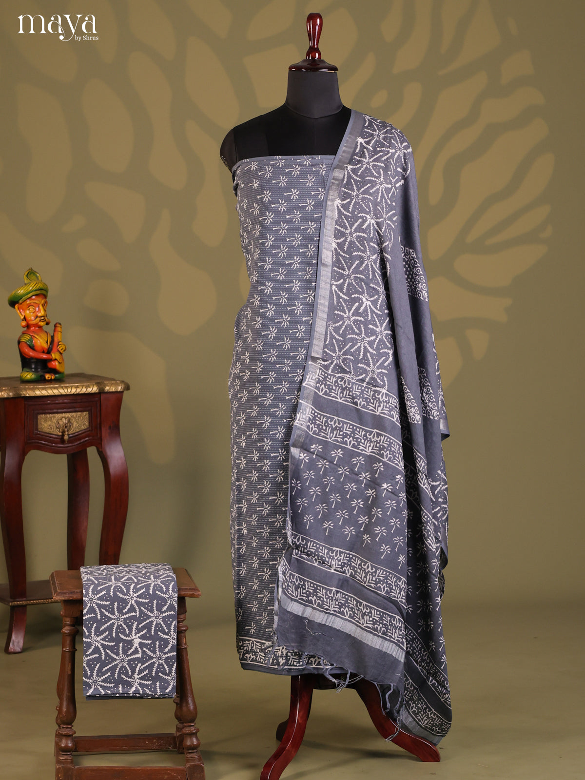 ELegant Grey Cotton salwar adds a touch of beauty to any ensemble with its lovely floral print and complementary bottom and dupatta. Made with high-quality cotton, this unstitched suit is perfect for any fashion-forward individual.