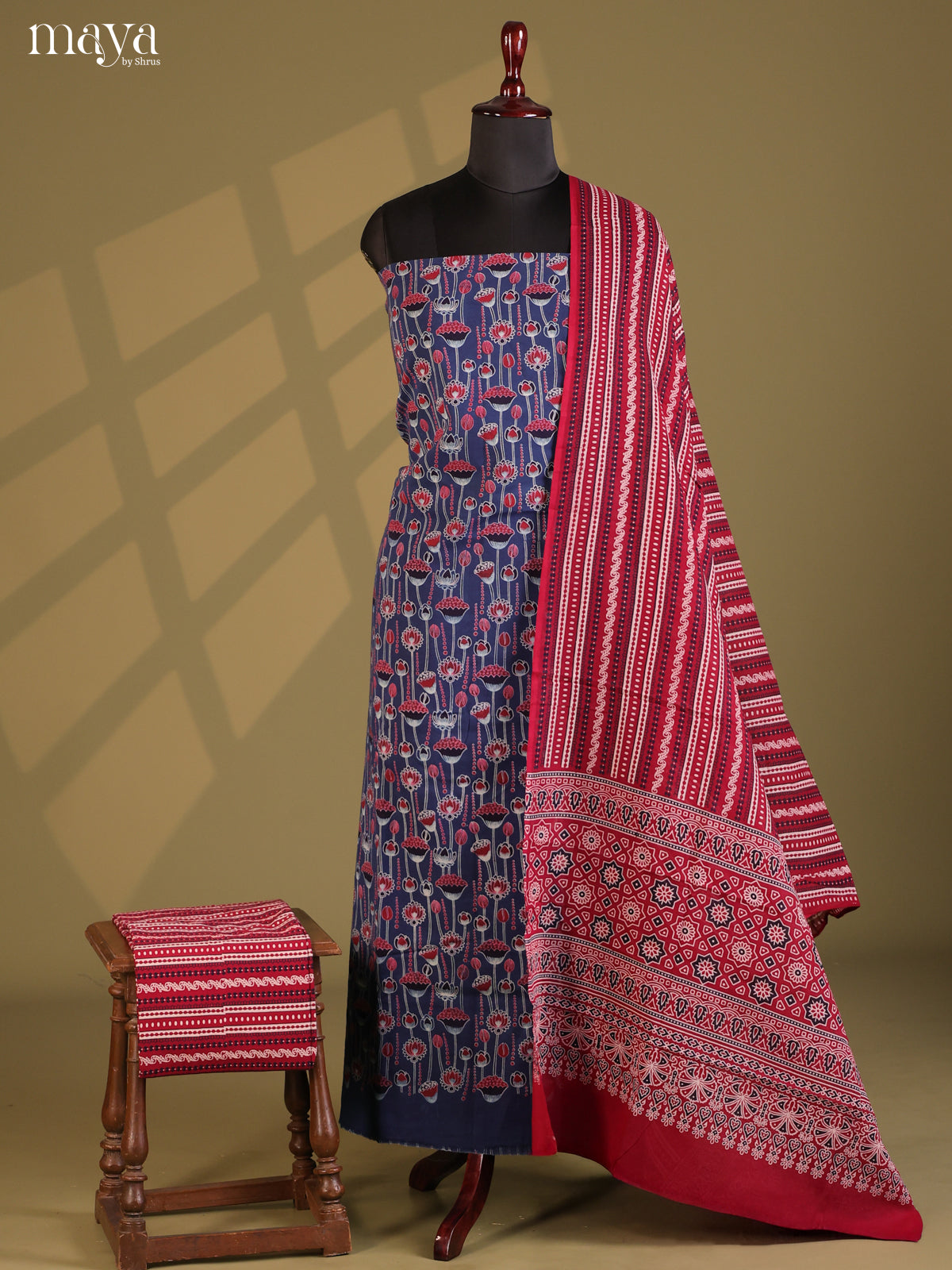 Blue with Maroon- Ajrakh Salwar Unstitch