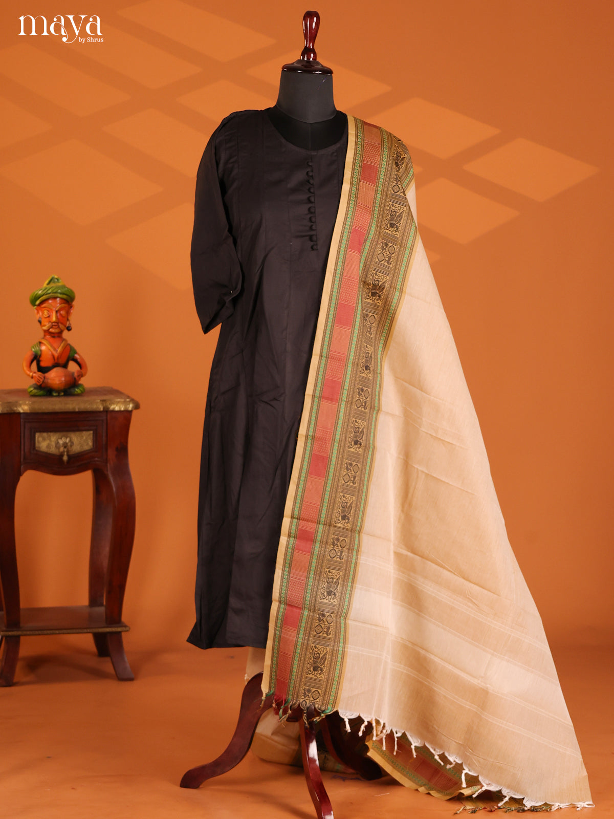 Charming Cream Chettinad Cotton Dupatta adorned with classic Thread woven borders.