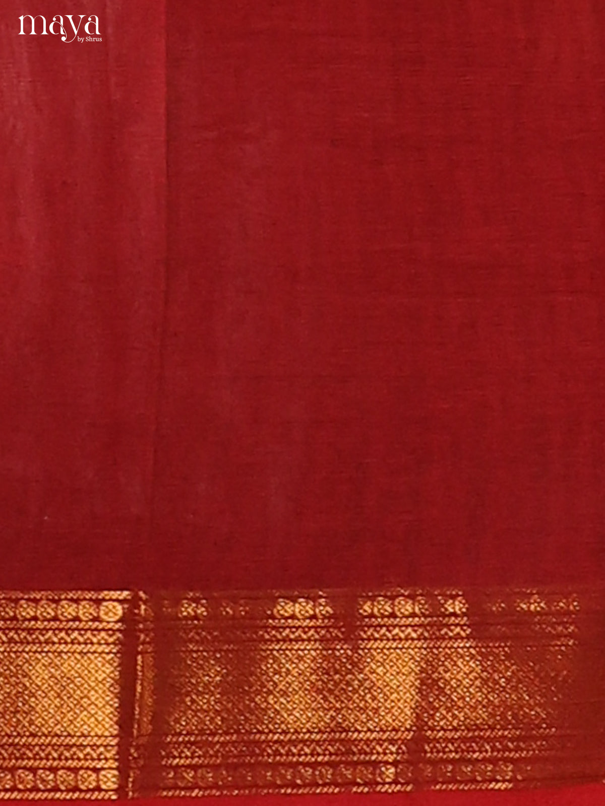 Pretty Red Chettinad Cotton Dupatta adorned with classic Self zari borders.